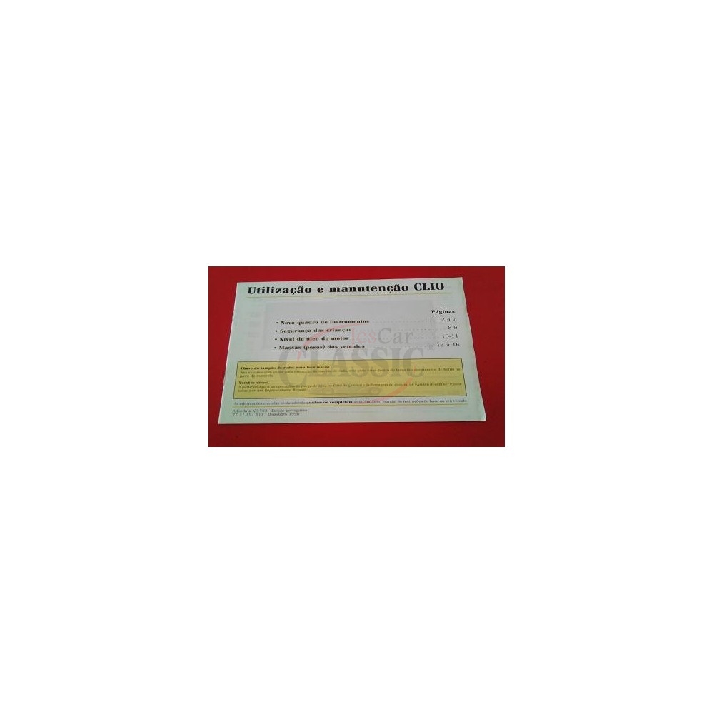 Manual de utilização e manutenção RENAULT CLIO I - FASE II