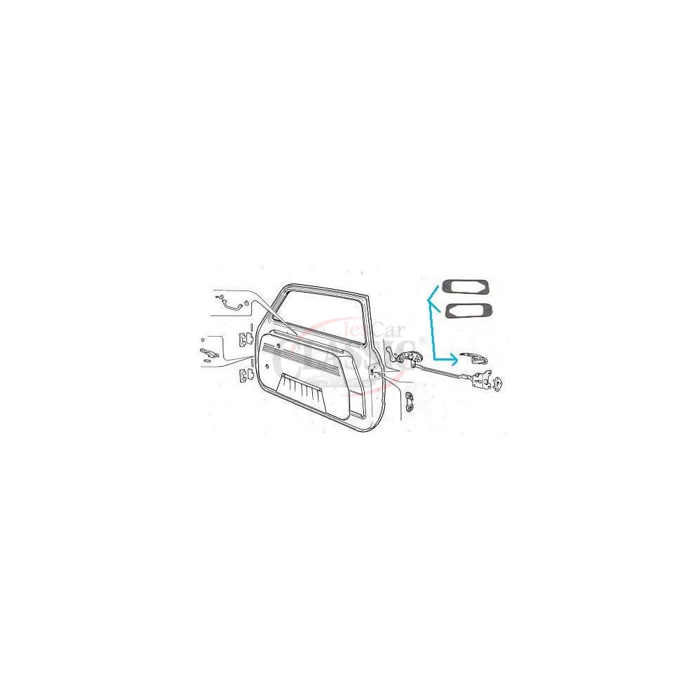 Jogo de 2 juntas em borracha do manipulo de abertura da porta exterior FIAT 600, artigo de stock antigo original da época, em bom estado de conservação, a precisar de uma limpeza mais profunda.