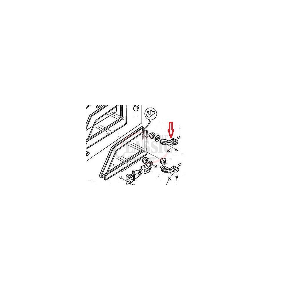 Dobradiça do vidro lateral á parte superior para CITROEN AX, PEUGEOT 205 artigo de stock antigo da época em bom estado de conservação.